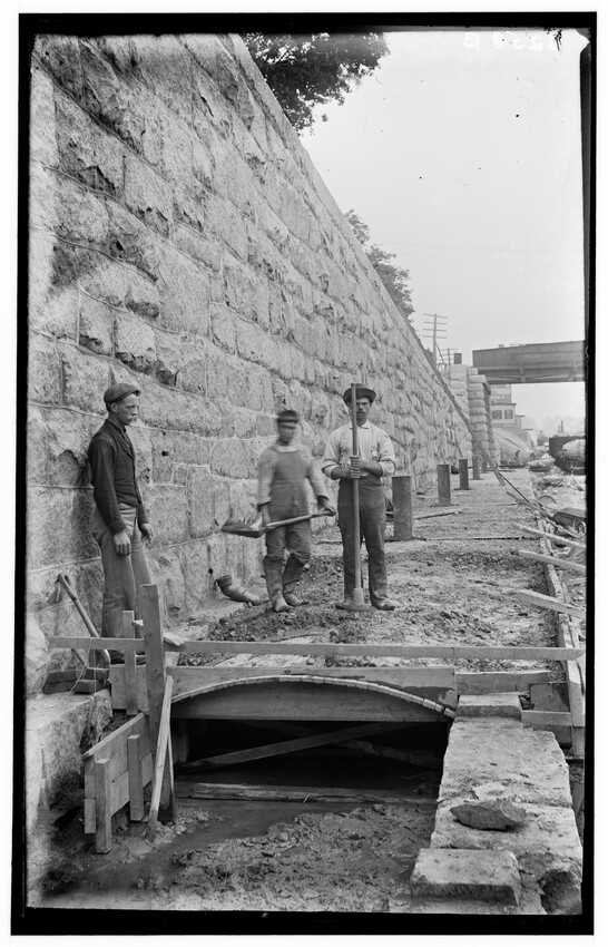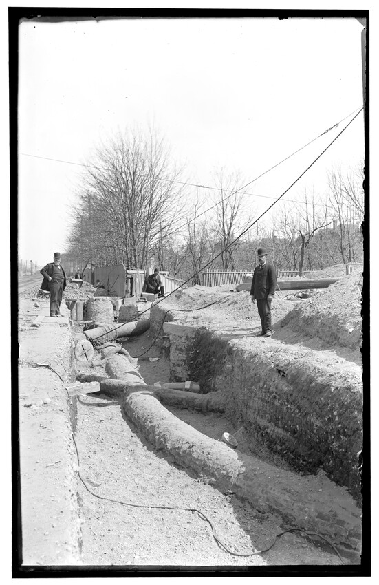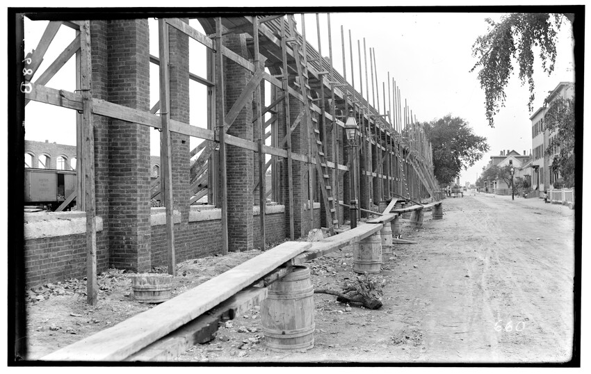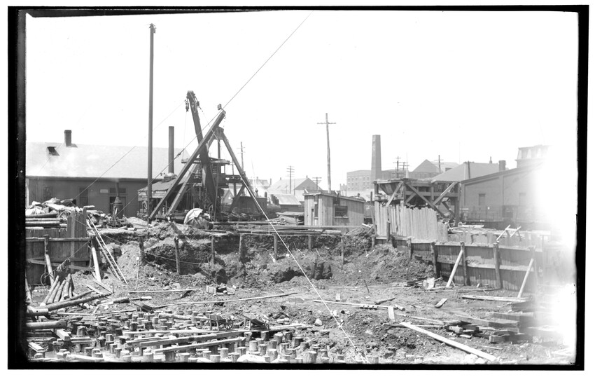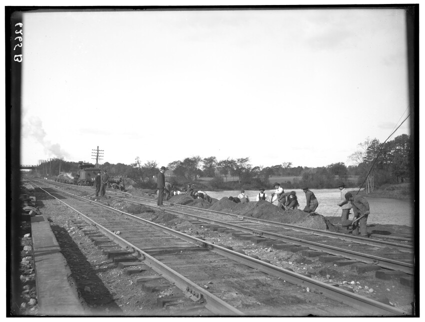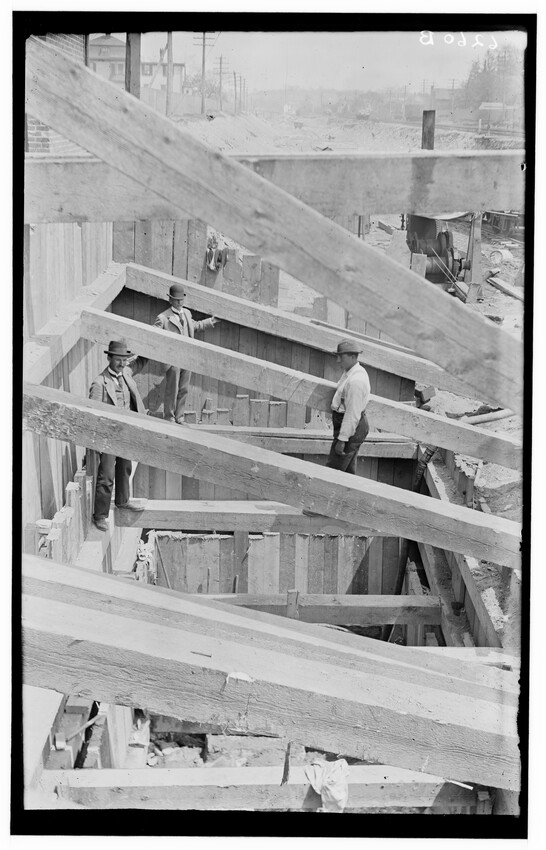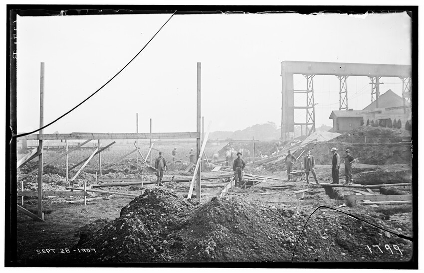 Placing of girders at Cypress Street, Brookline Hills station, Brookline, Massachusetts, 6228-B Placing of 8th 5 foot pipe to carry Laundry Brook, project of lowering tracks, Newton, Massachusetts, 6229-B Faneuil - Sewer Crossing of tracks, Boston, Massachusetts, 6230-B Excavation near tower #9, Beacon Park Yard, Allston, Boston, Massachusetts, 6231-B Coal pocket construction, Beacon Park Yard, Allston, Boston, Massachusetts, 6232-B Beacon Park Yard engine house roof construction, Allston, Boston, Massachusetts, 6233-B General view of Beacon Park Yard from top of gas tanks, Cambridge shown across the river, Allston, Boston, Massachusetts, 6234-B Support for tracks at Faneuil during construction of bridge, Boston, Massachusetts, 6235-B Exeter Street and Huntington Avenue Yard, showing storehouse construction (erecting chimney), Boston, Massachusetts, 6236-B Exeter Street and Huntington Avenue Yard, showing storehouse construction (erecting chimney), Boston, Massachusetts, 6237-B Trestle for filling, Forest Hills, Boston, Massachusetts, 6238-B Boston Yard (vicinity of Kneeland Street), construction of coal pocket foundation, old railroad engine and buildings in the background, Boston, Massachusetts, 6239-B Construction of coaling plant, looking east, North Greenbush, New York, 6240-B Construction of repair shops, West Springfield, Massachusetts, 6241-B Scene during construction in Beacon Park Yard, workers handling concrete slabs and houses in the background, Allston, Boston, Massachusetts, 6242-B Construction of new engine house, forms for engine pits, West Springfield, Massachusetts, 6243-B Cut through Holmes Hill, building new line of Boston & Albany around the town (west side), Westborough, Massachusetts, 6244-B Narrow gauge construction train in cut through Holmes Hill, building new line of Boston & Albany around the town (west side), Westborough, Massachusetts, 6245-B Building new line of Boston & Albany around the town (west side), Westborough, Massachusetts, 6246-B Relocating tracks around town (scene at Holmes Hill), Westborough, Massachusetts, 6247-B Derrick Tower and Interlocking Tower, Exeter Street Yard, Boston, Massachusetts, 6248-B Construction of Beacon Park Yard, Allston, Boston, Massachusetts, 6249-B Filling in of the Faneuil dump, showing motor and plow, Boston, Massachusetts, 6250-B Concrete wall construction at Ferdinand Street, showing houses along street, 6251-B Derrick tower at Dartmouth Street; NY, NH, & H. railroad station, Publishing Co. building in the background, Boston, Massachusetts, 6252-B Roundhouse construction at Beacon Park Yard, showing houses in background, Allston, Boston, Massachusetts, 6253-B Pile driver at Main Street, construction of main line, Westborough, Massachusetts, 6254-B Relocation of line around town, east heading (end) of big cut at Holmes Hill, showing houses in the background, Westborough, Massachusetts, 6255-B View of a group of barriers and Fay Brothers Undertakers business, Worcester, Massachusetts, 6256-B Temporary bridges at Main Street, view of houses in the background, Natick, Massachusetts, 6257-B Construction of new station, concrete conduit under north platform of station for Pegan brook, Natick, Massachusetts, 6258-B Lowering of tracks through town and elimination of grade crossing, Natick, Massachusetts, 6259-B Sheathing for the Walcott shop wall during the construction of new station and lowering of tracks, Natick, Massachusetts, 6260-B Sheathing for the Walcott shop wall during the construction of new station and lowering of tracks, Natick, Massachusetts, 6261-B Sheathing for the Walcott shop wall during the construction of new station and lowering of tracks, Natick, Massachusetts, 6262-B Lowering of tracks and elimination of grade crossings, showing North Avenue and early railroad engine, Natick, Massachusetts, 6263-B Lowering of tracks and elimination of grade crossings (west of station), Natick, Massachusetts, 6264-B New track location west of station, Natick, Massachusetts, 6265-B Changing location of Athol Branch, now abandoned and under the Quabbin Reservoir, 6266-B Building of bridge at Cambridge Street, trench for south abutment, Boston, Massachusetts, 6267-B Construction of paint shop in Allston car repair shop, Brighton, Boston, Massachusetts, 6268-B Seven story warehouse construction, excavation at N.W. Corner, East Boston, Massachusetts, 6269-B Seven story warehouse construction, excavation at N.W. Corner, East Boston, Massachusetts, 6270-B Construction of Beacon Park Yard, start of new engine house, Allston, Boston, Massachusetts, 6271-B Elimination of grade crossing, new bridge over Westfield River and view of station, Russell, Massachusetts, 6272-B Elimination of grade crossing, view from east side of tracks looking west, Russell, Massachusetts, 6273-B Elimination of grade crossing, view of masonry taken from track 2 looking west across the river, Russell, Massachusetts, 6274-B Elimination of grade crossing, construction of new bridge, view looking across Westfield River toward the station, Russell, Massachusetts, 6275-B Construction of Beacon Park Yard, Salt Creek culvert, Allston, Boston, Massachusetts, 6276-B Main Street looking north from junction of Russell Street and toward Main Street Crossing of Boston & Albany Railroad, Huntington, Massachusetts, 6177-B