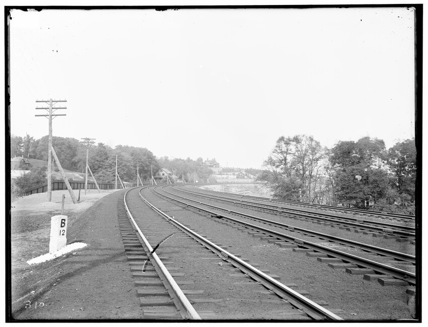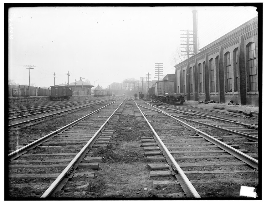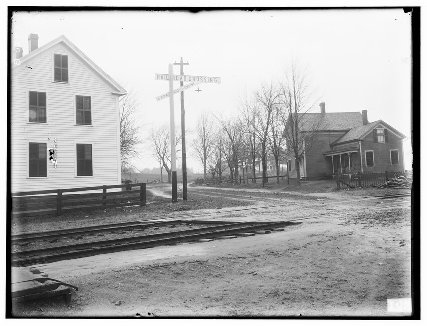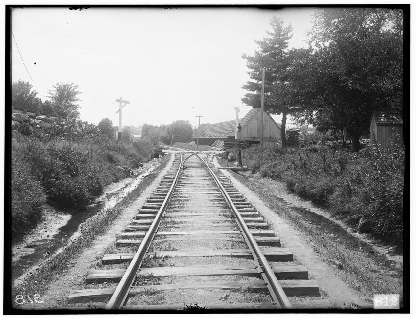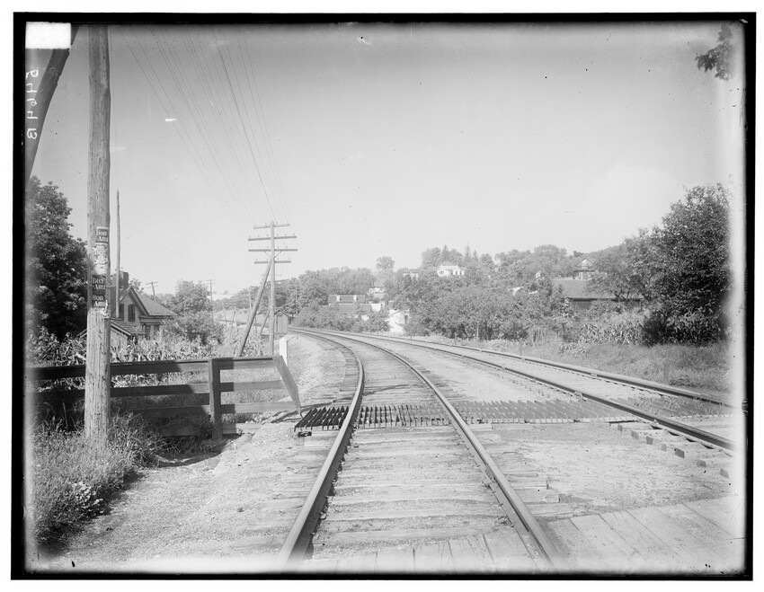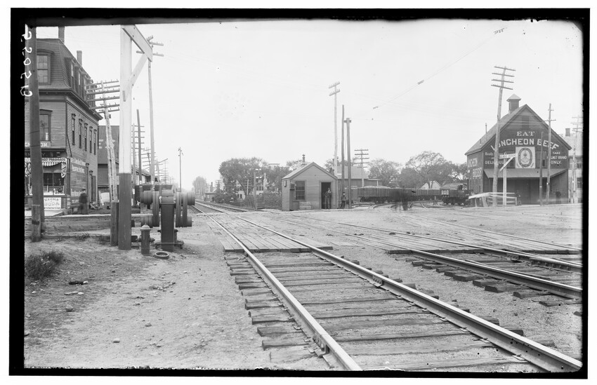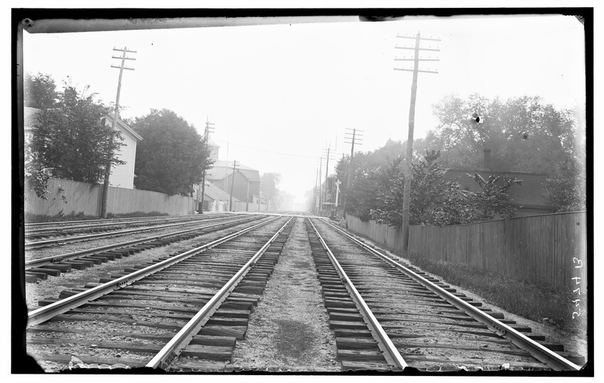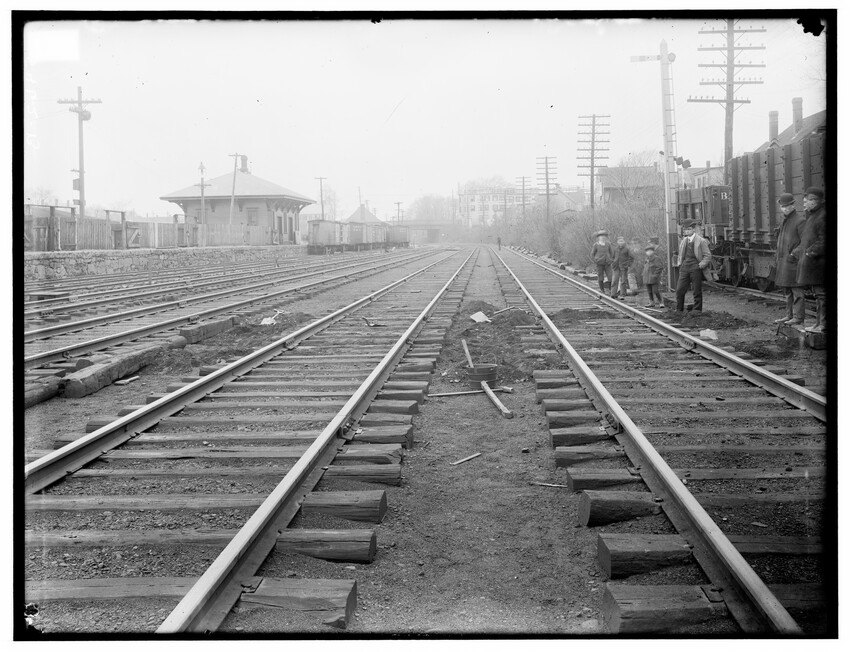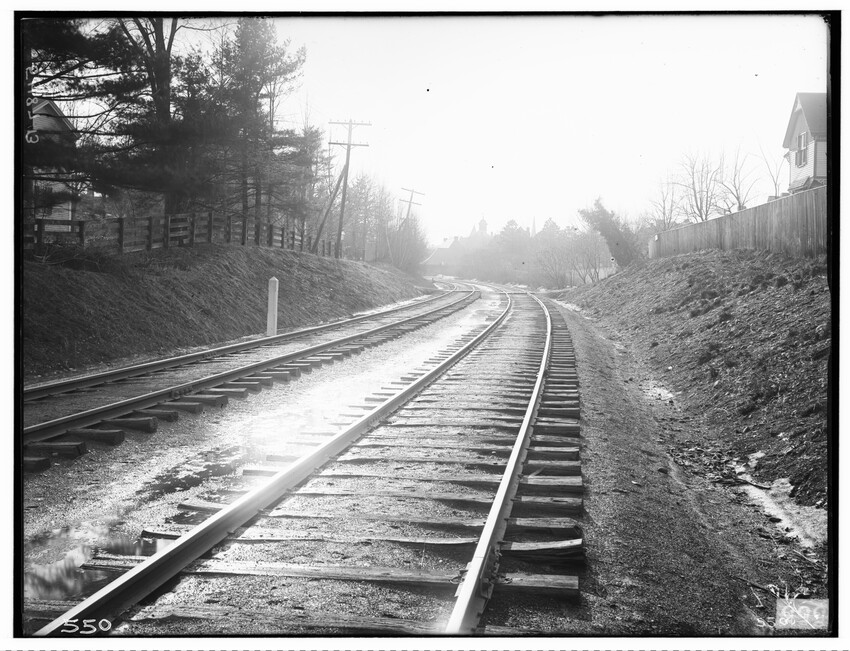 Old Boston and Albany railroad car repair building on right, demolished by building of the Massachusetts Turnpike, Brighton, Boston, Massachusetts, 5460-B Cottage Farm, looking east, near present location of Boston University buildings, Brookline, Boston, Massachusetts, 5461-B View along railroad tracks, looking east, Brighton, Boston, Massachusetts, 5462-B View of railroad tracks, Wellesley Station in the background under a bridge, Wellesley, Massachusetts, 5463-B Looking east along tracks from Austerlitz Street, Chatham, New York, 5464-B View of man standing on railroad tracks in the Berkshire Mountains, looking west, Middlefield, Massachusetts, 5465-B Bridge #135, east of Middlefield near Chester, Middlefield, Massachusetts, 5466-B View of Hudson Avenue, Chatham, New York, 5467-B View of Hudson Avenue, Chatham, New York, 5468-B Grand Junction Branch, view of oil works, Cambridge, Massachusetts, 5469-B Bulkhead at east end of old stock yard in Brighton, Boston, Massachusetts, 5470-B Boylston Street, north of tracks, Newton Highlands, Newton, Massachusetts, 5471-B Fitzgerald's Crossing, 5472-B Fitzgerald's Crossing, 5473-B From St. James Street, looking west, 5474-B View along tracks from unidentified bridge, 5475-B Bridge #218, position c, Pittsfield, Massachusetts, 5476-B Railroad tracks in the Berkshire Mountains, near Fairfield Brook, Massachusetts, 5477-B Railroad tracks in the Berkshire Mountains, near Fairfield Brook, Massachusetts, 5478-B Row of freight cars and depot, Three Rivers, Palmer, Massachusetts, 5479-B Railroad crossing, Three Rivers, Palmer, Massachusetts, 5480-B Sumner Road Bridge, 5481-B Beacon Park Yard, Allston, Boston, Massachusetts, 5482-B Langley Road Crossing on the Highland Branch, Newton Center, Newton, Massachusetts, 5483-B View along railroad tracks west of bridge #67, looking west, 5484-B View along railroad tracks, Westfield, Massachusetts, 5485-B Curtis Street on Grand Junction Branch, East Boston, Boston, Massachusetts, 5486-B Newton Highlands, on the Highland Branch, Newton, Massachusetts, 5487-B Lake Crossing, between Wellesley and Natick, Wellesley, Massachusetts, 5488-B Main line of Boston and Albany Railroad between Westborough and North Grafton, small tool shed on left, Westborough, Massachusetts, 5489-B At 23rd mile post 1.5 miles west of Framingham Station, Framingham, Massachusetts, 5490-B At 23rd mile post just west of Framingham Station, Framingham, Massachusetts, 5491-B Milford Branch looking south, coal pockets on left, Milford, Massachusetts, 5492-B New York, New Haven, and Hartford railroad tracks, looking east, South End, Boston, Massachusetts, 5493-B Wellesley Farms, looking east toward Riverside by Boston mile post #12, Wellesley, Massachusetts, 5494-B Cambridge Street bridge from top, east wing, north abutment, Boston, Massachusetts, 5495-B Beacon Park Yard, taken from Cambridge Street bridge, looking east, Allston, Boston, Massachusetts, 5496-B Beacon Park Yard, taken from Cambridge Street bridge, looking east, Allston, Boston, Massachusetts, 5497-B Scene along the Westfield River, near mile post #125, Russell, Massachusetts, 5498-B Small railroad station, probably along the Milford Branch, 5499-B Railroad crossing, probably along the Milford Branch, 5500-B 40 ton crane in Kneeland Street Yard, Boston, Massachusetts, 5501-B Freight yard, taken from roof of machine shop, looking east, West Springfield, Massachusetts, 5502-B Freight yard, taken from roof of machine shop, looking west, West Springfield, Massachusetts, 5503-B Work train (Large stack locomotive, and flat cars), Natick, Massachusetts, 5504-B Main Street crossing, looking west, Natick, Massachusetts, 5505-B During construction of four tracking and elimination of grade crossing, Main Street crossing, Natick, Massachusetts, 5506-B Gravel bank, Wilbraham, Mass., 10830-B Unidentified building, 10831-B Unidentified embankment, 10832-B