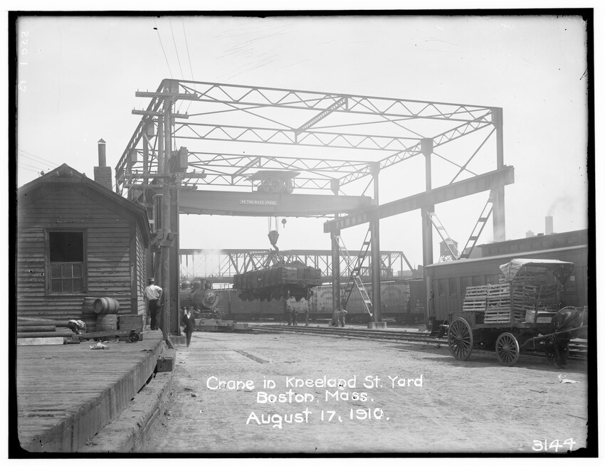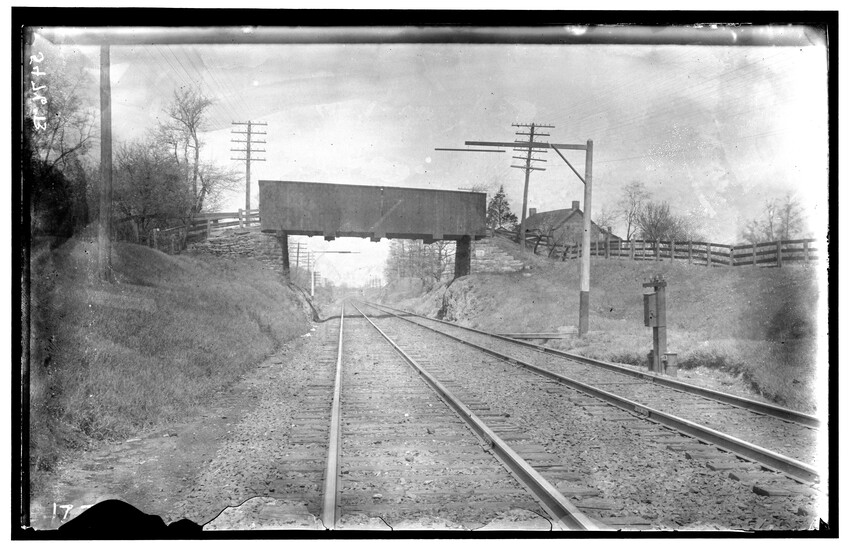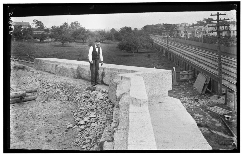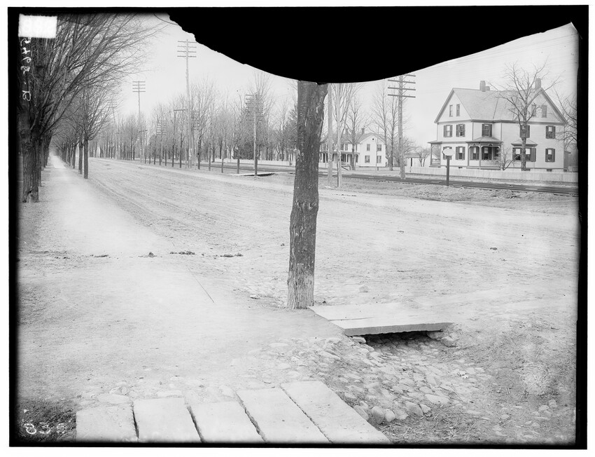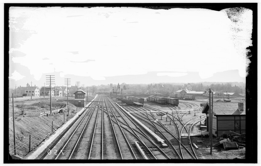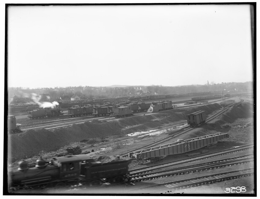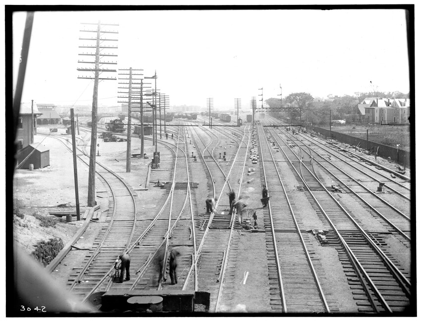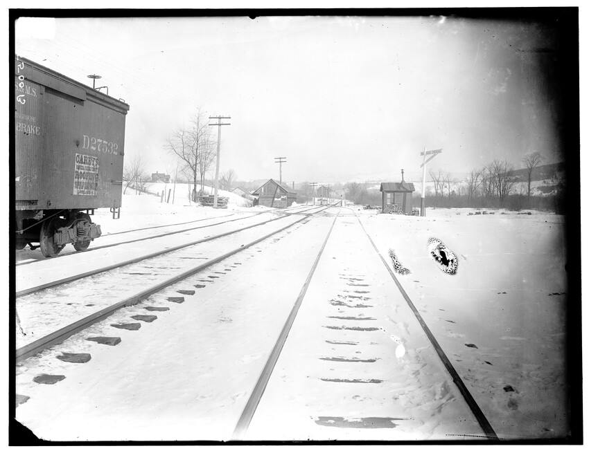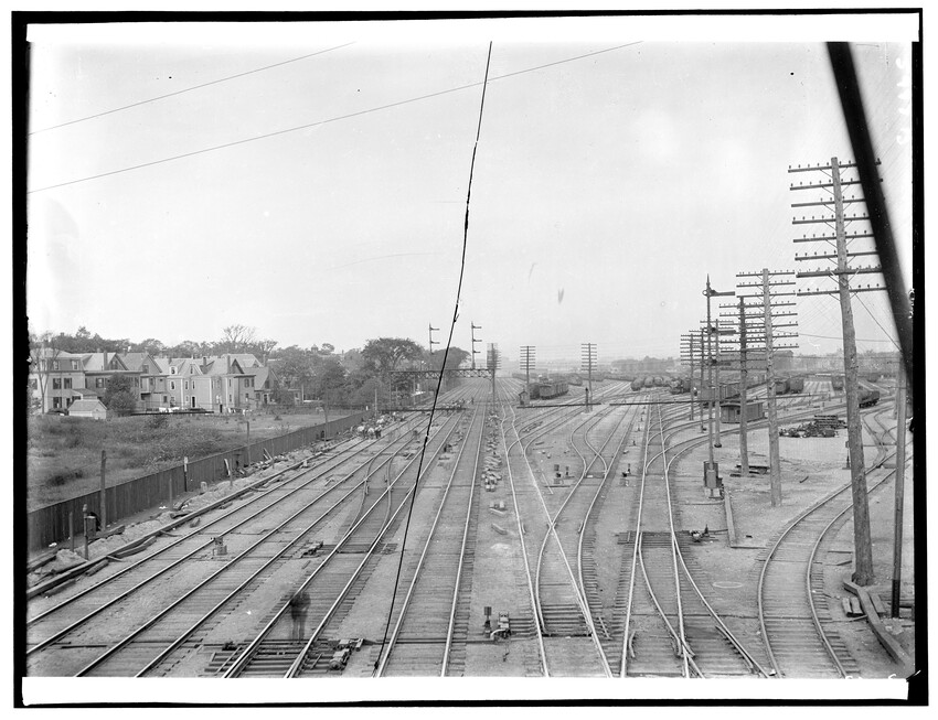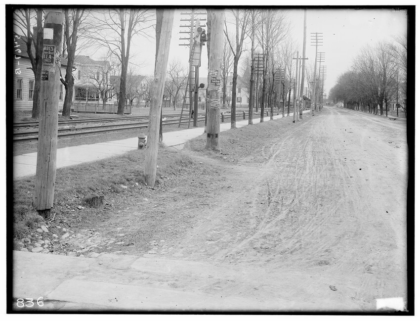 Old Boston and Albany railroad car repair building on right, demolished by building of the Massachusetts Turnpike, Brighton, Boston, Massachusetts, 5460-B Cottage Farm, looking east, near present location of Boston University buildings, Brookline, Boston, Massachusetts, 5461-B View along railroad tracks, looking east, Brighton, Boston, Massachusetts, 5462-B View of railroad tracks, Wellesley Station in the background under a bridge, Wellesley, Massachusetts, 5463-B Looking east along tracks from Austerlitz Street, Chatham, New York, 5464-B View of man standing on railroad tracks in the Berkshire Mountains, looking west, Middlefield, Massachusetts, 5465-B Bridge #135, east of Middlefield near Chester, Middlefield, Massachusetts, 5466-B View of Hudson Avenue, Chatham, New York, 5467-B View of Hudson Avenue, Chatham, New York, 5468-B Grand Junction Branch, view of oil works, Cambridge, Massachusetts, 5469-B Bulkhead at east end of old stock yard in Brighton, Boston, Massachusetts, 5470-B Boylston Street, north of tracks, Newton Highlands, Newton, Massachusetts, 5471-B Fitzgerald's Crossing, 5472-B Fitzgerald's Crossing, 5473-B From St. James Street, looking west, 5474-B View along tracks from unidentified bridge, 5475-B Bridge #218, position c, Pittsfield, Massachusetts, 5476-B Railroad tracks in the Berkshire Mountains, near Fairfield Brook, Massachusetts, 5477-B Railroad tracks in the Berkshire Mountains, near Fairfield Brook, Massachusetts, 5478-B Row of freight cars and depot, Three Rivers, Palmer, Massachusetts, 5479-B Railroad crossing, Three Rivers, Palmer, Massachusetts, 5480-B Sumner Road Bridge, 5481-B Beacon Park Yard, Allston, Boston, Massachusetts, 5482-B Langley Road Crossing on the Highland Branch, Newton Center, Newton, Massachusetts, 5483-B View along railroad tracks west of bridge #67, looking west, 5484-B View along railroad tracks, Westfield, Massachusetts, 5485-B Curtis Street on Grand Junction Branch, East Boston, Boston, Massachusetts, 5486-B Newton Highlands, on the Highland Branch, Newton, Massachusetts, 5487-B Lake Crossing, between Wellesley and Natick, Wellesley, Massachusetts, 5488-B Main line of Boston and Albany Railroad between Westborough and North Grafton, small tool shed on left, Westborough, Massachusetts, 5489-B At 23rd mile post 1.5 miles west of Framingham Station, Framingham, Massachusetts, 5490-B At 23rd mile post just west of Framingham Station, Framingham, Massachusetts, 5491-B Milford Branch looking south, coal pockets on left, Milford, Massachusetts, 5492-B New York, New Haven, and Hartford railroad tracks, looking east, South End, Boston, Massachusetts, 5493-B Wellesley Farms, looking east toward Riverside by Boston mile post #12, Wellesley, Massachusetts, 5494-B Cambridge Street bridge from top, east wing, north abutment, Boston, Massachusetts, 5495-B Beacon Park Yard, taken from Cambridge Street bridge, looking east, Allston, Boston, Massachusetts, 5496-B Beacon Park Yard, taken from Cambridge Street bridge, looking east, Allston, Boston, Massachusetts, 5497-B Scene along the Westfield River, near mile post #125, Russell, Massachusetts, 5498-B Small railroad station, probably along the Milford Branch, 5499-B Railroad crossing, probably along the Milford Branch, 5500-B 40 ton crane in Kneeland Street Yard, Boston, Massachusetts, 5501-B Freight yard, taken from roof of machine shop, looking east, West Springfield, Massachusetts, 5502-B Freight yard, taken from roof of machine shop, looking west, West Springfield, Massachusetts, 5503-B Work train (Large stack locomotive, and flat cars), Natick, Massachusetts, 5504-B Main Street crossing, looking west, Natick, Massachusetts, 5505-B During construction of four tracking and elimination of grade crossing, Main Street crossing, Natick, Massachusetts, 5506-B Gravel bank, Wilbraham, Mass., 10830-B Unidentified building, 10831-B Unidentified embankment, 10832-B