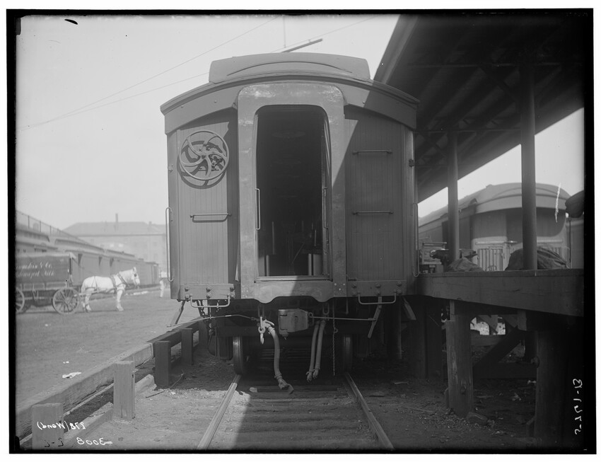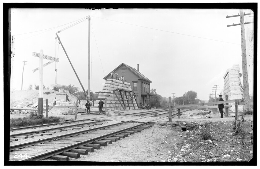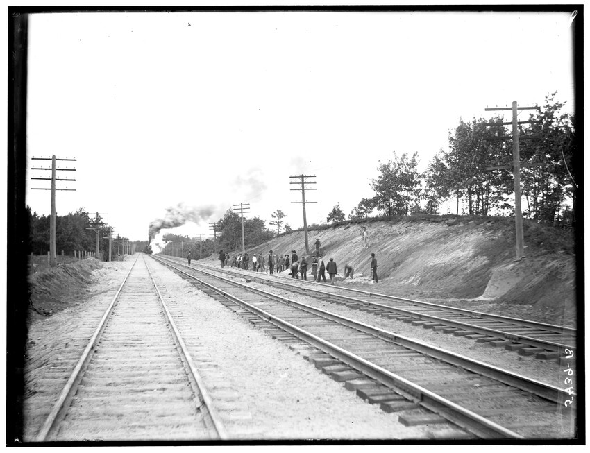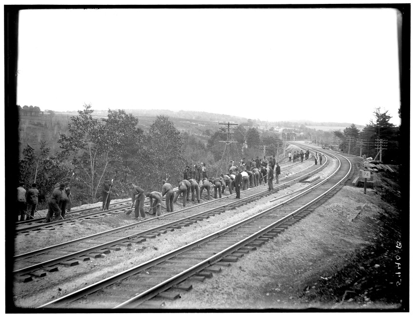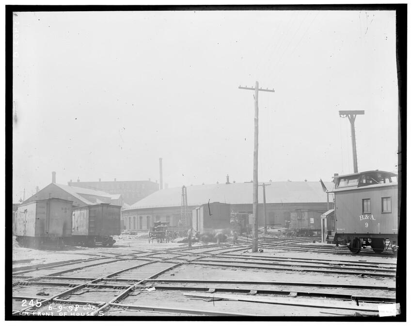 Pumps in heating plant, Brighton, Boston, Massachusetts, 5409-B Right-of-way at Brookline Junction on the Highland Branch, Brookline, Massachusetts, 5410-B Broken wagons hit by train at railroad crossing, Framingham, Massachusetts, 5411-B Broken wagons hit by train at railroad crossing, Framingham, Massachusetts, 5412-B Railroad crossing, Framingham, Massachusetts, 5413-B Grand Junction Branch, East Cambridge, Cambridge, Massachusetts, 5414-B Freight cars in old Boston Yard (near Kneeland Street), Fort Point Channel in background, Boston, Massachusetts, 5415-B View of old Boston Yard (near Kneeland Street), Fort Point Channel and schooner in background, Boston, Massachusetts, 5416-B Interior view of locomotive repair shop, West Springfield, Massachusetts, 5417-B Construction related to the New Union Station and grade crossing elimination project, Worcester, Massachusetts, 5418-B Extension of Boston and Albany freight house, Worcester, Massachusetts, 5419-B Construction of the Boston and Albany freight house extension, Worcester, Massachusetts, 5420-B Signal Tower #28, Worcester, Massachusetts, 5421-B Construction of the Huntington Avenue Station, looking east, bridge in background is Dartmouth Street, Boston, Massachusetts, 5422-B Passenger coach used for Better Farming Special Train, 5424-B Mountain scenery, Berkshire Mountains, Massachusetts, 5425-B Mountain scenery, Berkshire Mountains, Massachusetts, 5426-B View of railroad and river in the Berkshire Mountains, Russell, Massachusetts, 5427-B Tower #12, station and large church in background, 5428-B Railroad tracks, showing house behind, North Grafton, Grafton, Massachusetts, 5429-B View of a group of barriers and Fay Brothers Undertakers business, Worcester, Massachusetts, 5430-B View of railroad looking east, Bridge #140 in lower right of the image, Middlefield, Massachusetts, 5431-B Detail of old coupler on freight car, 5432-B Detail of Merchants Dispatch Transport Car #9165 (refrigerator car), 5433-B Old Boston and Albany hand car in Allston Yard, Brighton, Boston, Massachusetts, 5434-B Box car in the Back Bay railroad yards, Back Bay, Boston, Massachusetts, 5435-B Dump car A-46 in Allston Yard, Brighton, Boston, Massachusetts, 5436-B Interior of passenger coach fitted for Better Farming Special Train, 5437-B Boston Freight Yard (near Kneeland Street), image taken at old freight house #5, Boston, Massachusetts, 5438-B West of railroad station looking east with road gang and approaching engine, Charlton, Massachusetts, 5439-B West of railroad station looking west with road gang and approaching engine, Charlton, Massachusetts, 5440-B Rowe Street railroad crossing, Rowe, Massachusetts, 5441-B Speen Street Abutments, Natick, Massachusetts, 5442-B West side of Speen Street, south side of railroad, Natick, Massachusetts, 5443-B East slope of Mill Street, north side of railroad, Natick, Massachusetts, 5444-B Farnum Bros. Limeworks, looking west from top of trestle, Cheshire, Massachusetts, 5445-B Farnum Bros. Limeworks, looking west, electric railroad trestle on right, Cheshire, Massachusetts, 5446-B Farnum Bros. Limeworks, looking east, electric railroad trestle on right, Cheshire, Massachusetts, 5447-B Farnum Bros. Limeworks, looking east, electric railroad trestle on right, Cheshire, Massachusetts, 5448-B Schermerhorn's crossing, looking north and east of tracks, Schodack, New York, 5449-B View along railroad tracks, Springfield, Massachusetts, 5450-B Looking west at Gales' Crossing, Pittsfield, Massachusetts, 5451-B Jason's Crossing, looking west, Pittsfield, Massachusetts, 5452-B Rocky Hill on Milford Branch, showing Milford and Uxbridge Street railroad crossing, Milford, Massachusetts, 5453-B Rocky Hill on Milford Branch, showing Milford and Uxbridge Street railroad crossing, Milford, Massachusetts, 5454-B View on North Brookfield Branch, East Brookfield, Massachusetts, 5455-B View on North Brookfield Branch, East Brookfield, Massachusetts, 5456-B Mail car #278 (west end), 5761-B Framework of the Coaling Plant at the Beacon Park Yard, Brighton, Boston, Massachusetts, 5511-B Railroad crossing at end of station platform, North Grafton, Grafton, Massachusetts, 5507-B