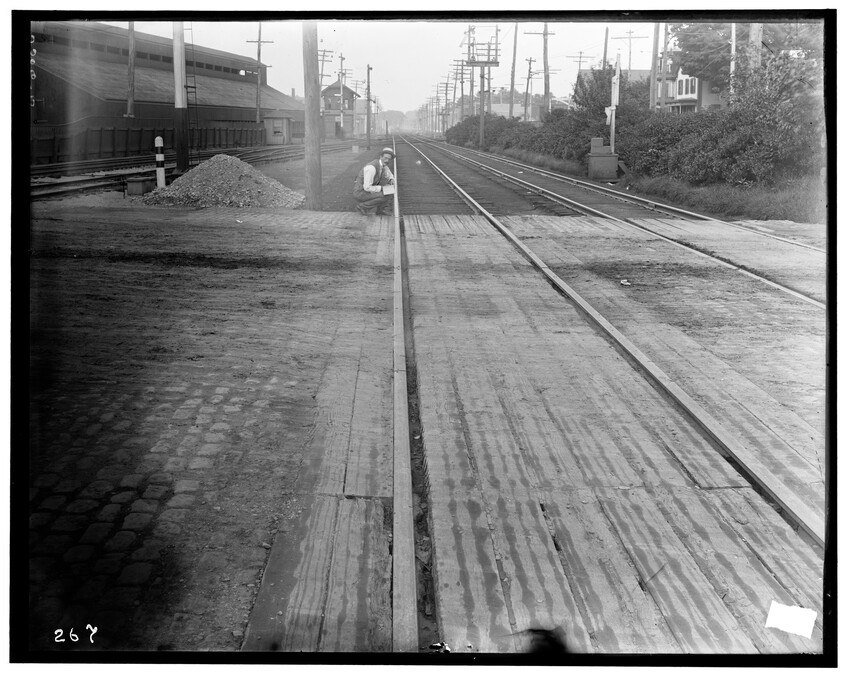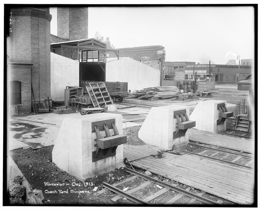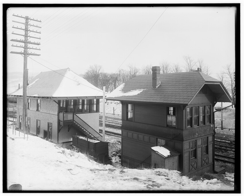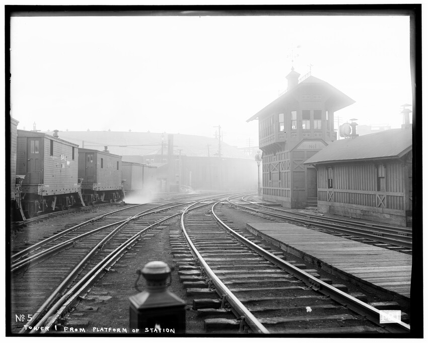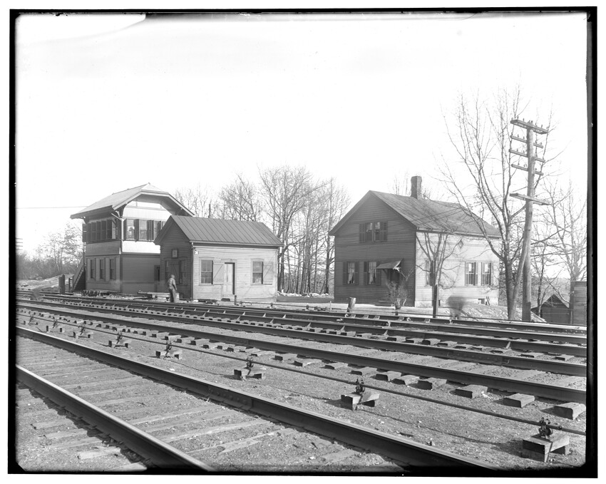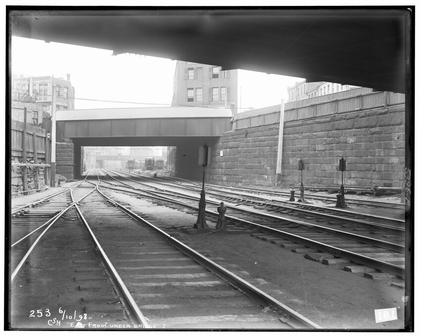 Construction detail of Washington Street, now gone to make way for Massachusetts Turnpike, Newton, Massachusetts, 5360-B At State Line Tunnel, 5361-B At State Line Tunnel, 5362-B In the Berkshire Mountains, between Chester and Middlefield, 5363-B Freight yards near old Kneeland Street station, Boston, Massachusetts, 5364-B Grand Junction Branch, East Boston, Massachusetts, 5365-B Grand Junction Branch, Prescott Street Yard, East Boston, Massachusetts, 5366-B Grand Junction Branch, Prescott Street Yards, East Boston, Massachusetts, 5367-B Grand Junction Branch, Everett, Massachusetts, 5368-B View of Riverside, Newton, Massachusetts, 5369-B View of Riverside, looking toward Weston, Newton, Massachusetts, 5370-B Crossing of Washington Street, start of grade crossing elimination project in 1895, Newton, Massachusetts, 5371-B Grand Junction Branch, east of station, Everett, Massachusetts, 5372-B Grand Junction Branch, East Cambridge, Cambridge, Massachusetts, 5373-B Grand Junction Branch, Prescott Street yard, East Boston, Boston, Massachusetts, 5374-B Grand Junction Branch, Saratoga Street, East Boston, Boston, Massachusetts, 5375-B Railroad in the Berkshire Mountains, Washington, Massachusetts, 5376-B Railroad in the Berkshire Mountains, view of bridge (High Bridge), Washington, Massachusetts, 5377-B Railroad in the Berkshire Mountains, east of station, view of Fairfield Brook, Massachusetts, 5378-B Railroad in the Berkshire Mountains, view of Fairfield Brook, Massachusetts, 5379-B Railroad in the Berkshire Mountains, near the Fairfield Brook, Massachusetts, 5380-B Man standing in the doorway of an unidentified building in the Berkshire Mountains, near the Fairfield Brook, Massachusetts, 5381-B Railroad in the Berkshire Mountains, view of Fairfield Brook, Massachusetts, 5382-B View of the Westfield River, Russell, Massachusetts, 5383-B View of freight yards and locomotive repair facilities looking east, West Springfield, Massachusetts, 5384-B View of locomotive repair facilities at time of construction, looking west, West Springfield, Massachusetts, 5385-B Man kneeling by railroad crossing, Framingham, Massachusetts, 5386-B Railroad tracks with field behind, North Grafton, Grafton, Massachusetts, 5387-B Riverside, view looking east over station platform, junction with Highland Branch on the right, Newton, Massachusetts, 5388-B Bumper posts in new coach yard, Worcester, Massachusetts, 5389-B Bumper posts in new coach yard, Worcester, Massachusetts, 5390-B Switch Tower #28, Worcester, Massachusetts, 5391-B Switch Tower #28, interior view, Worcester, Massachusetts, 5392-B Switch Tower at Webster Junction, junction of the Webster Branch, Auburn, Massachusetts, 5393-B Switch Tower at Webster Junction, junction of the Webster Branch, Auburn, Massachusetts, 5393.5-B Switch Tower at Webster Junction, junction of the Webster Branch, Auburn, Massachusetts, 5394-B Switch Tower #55 at North Adams Junction, junction of the North Adams Branch, Pittsfield, Massachusetts, 5395-B Entrance to Boston Yard, looking east from under bridge #7, Boston, Massachusetts, 5396-B South wall near bridge #3 at the Boston Yard, Boston, Massachusetts, 5397-B The draughting room in the old Kneeland Street Station of the Boston and Albany Railroad, Boston, Massachusetts, 5398-B Switch Tower #1 at the entrance to the old Boston Yard, presently the site of the Massachusetts Turnpike interchange with Central Artery and Southeast Expressway, Boston, Massachusetts, 5399-B Door #17 in Freight House #1 on Albany Street, old freight yards in vicinity of South Station, Boston, Massachusetts, 5400-B Boston freight yard (vicinity of South Station), Old Poultry Platform (large shipments of poultry at turn of the century), Boston, Massachusetts, 5401-B Boston freight yard (vicinity of South Station), Old Poultry Platform (large shipments of poultry at turn of the century), Boston, Massachusetts, 5402-B Old coal shed looking north, Boston Yard, Boston, Massachusetts, 5403-B Old coal shed at Lehigh Street looking north, Boston Freight Yard, Boston, Massachusetts, 5404-B Setting of the Franklin Street girders during grade crossing elimination project, Worcester, Massachusetts, 5405-B Baggage car #3208, 10778-B Exterior detail of passenger coach #1351 commuter car, 10779-B Baggage cars #782 and #2146, 10780-B