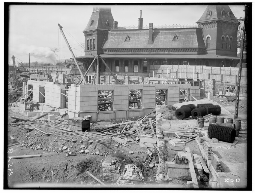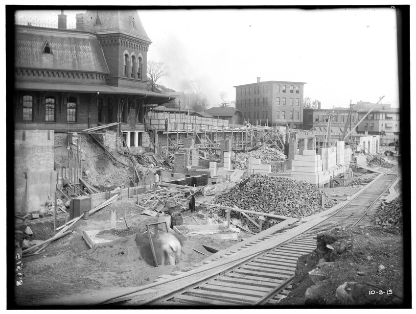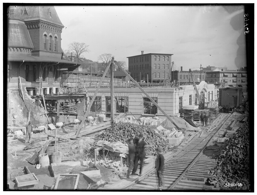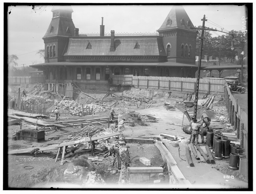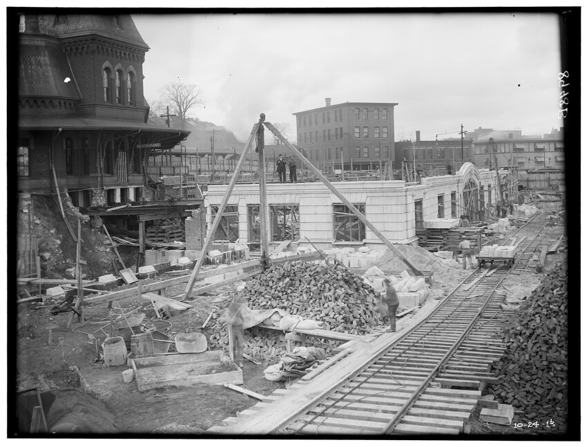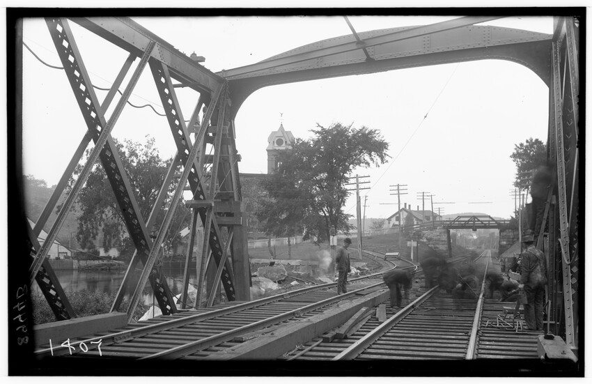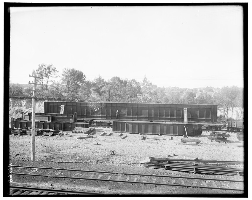 Bridge #209, east corner, north abutment, Chatham, New York, 8910-B Bridge #209, west corner, north abutment, Chatham, New York, 8911-B Construction of the Southbridge Street bridge, Worcester, Massachusetts, 8912-B West Newton railroad station, view of stairway, probably photographed because of an accident case, Newton, Massachusetts, 8913-B Newtonville railroad station, platform looking east, Newton, Massachusetts, 8914-B Newton railroad station, platform looking down pathway, Newton, Massachusetts, 8915-B Commonwealth Avenue, embankment at crossing, Auburndale, Newton, Massachusetts, 8916-B New bridge over Boylston Street, Rt. 9, B & W trolley tracks in foreground, Eliot, Newton, Massachusetts, 8917-B Crossing of the Highland Branch (now MBTA) over Boylston Street, Rt. 9, showing old Boston and Worcester trolley line, old bridge #317 subsequently replaced and Rt. 9 widened to put trolley tracks in … Crossing of Highland Branch over Boylston Street, Rt. 9, looking east, old bridge #317 subsequently replaced, Eliot, Newton, Massachusetts, 8919-B Crossing of Highland Branch over Boylston Street, Rt. 9, looking east, old bridge #317 subsequently replaced, Eliot, Newton, Massachusetts, 8920-B Crossing of Highland Branch over Boylston Street, Rt. 9, looking east, old bridge #317 subsequently replaced, Eliot, Newton, Massachusetts, 8921-B Erecting new bridge #339 over Charles River on Newton Lower Falls Branch, Newton, Massachusetts, 8922-B Erecting new bridge #339 over Charles River on Newton Lower Falls Branch, Newton, Massachusetts, 8923-B Erecting new bridge #339 over Charles River on Newton Lower Falls Branch, Newton, Massachusetts, 8924-B State Line Tunnel, between New York and Massachusetts, view from the west, Canaan, New York, 8925-B State Line Tunnel, between New York and Massachusetts, Canaan, New York, 8926-B State Line Tunnel, between New York and Massachusetts, Canaan, New York, 8927-B State Line Tunnel, taken from the east, between New York and Massachusetts, Canaan, New York, 8928-B State Line Tunnel, taken from the west, between New York and Massachusetts, Canaan, New York, 8929-B State Line Tunnel, taken from the west, between New York and Massachusetts, Canaan, New York, 8930-B Southbridge Street bridge, east abutment, Worcester, Massachusetts, 8931-B Southbridge Street bridge, Worcester, Massachusetts, 8932-B Southbridge Street bridge abutments, Worcester, Massachusetts, 8933-B Southbridge Street bridge, Worcester, Massachusetts, 8934-B Washington Street bridge, Worcester, Massachusetts, 8935-B Setting of the Franklin Street girders, Worcester, Massachusetts, 8936-B Bridge girders lying on the ground, 8937-B Bridge abutment, 8938-B Beacon Street bridge, northeast corner of abutment, Boston, Massachusetts, 8939-B Bridge in Brookline Park, probably Fenway, Boston, Massachusetts, 8940-B Culvert under Commonwealth Avenue, near Cottage Farm, Allston, Boston, Massachusetts, 8941-B Audubon Road bridge, west abutment, Boston, Massachusetts, 8942-B Bridge #74 A, showing workers, Warren or East Brookfield, Massachusetts, 8943-B View of unidentified bridge, 8944-B Construction of new passenger station, front of main building, looking west, Pittsfield, Massachusetts, 8945-B Construction of new passenger station, view of west end of main building, looking east, old station on the left, Pittsfield, Massachusetts, 8946-B Construction of new passenger station, front of main building, looking west, Pittsfield, Massachusetts, 8947-B Construction of new passenger station, view of south west corner of main building, old station on the left, Pittsfield, Massachusetts, 8948-B Construction of new passenger station, view of west end of main building, old station on the left, Pittsfield, Massachusetts, 8949-B Construction of new passenger station, view of west end of main building, old station on the left, Pittsfield, Massachusetts, 8950-B Construction of new passenger station, view of south west corner of main building, old station on the left, Pittsfield, Massachusetts, 8951-B Construction of new passenger station, view of south east corner of main building, old station in the background, Pittsfield, Massachusetts, 8952-B Construction of new passenger station, view of south east corner of main building, old station in the background, Pittsfield, Massachusetts, 8953-B Construction of new passenger station, view of south east corner of main building, old station in the background, Pittsfield, Massachusetts, 8954-B Construction of new passenger station, view of express building, looking east, Pittsfield, Massachusetts, 8955-B Construction of new passenger station, interior view of north west corner of ceiling, Pittsfield, Massachusetts, 8956-B Construction of new passenger station, south east corner of main building, Pittsfield, Massachusetts, 9008-B Construction of new passenger station, west of main building, Pittsfield, Massachusetts, 9009-B Construction of new passenger station, Pittsfield, Massachusetts, 9010-B