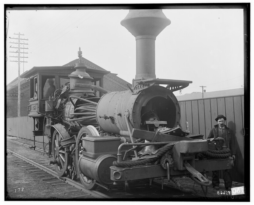 Locomotive #1252, double ender used in Newton Highlands circuit, Newton, Massachusetts, 8549-B Locomotive #2534, West Springfield, Massachusetts, 8556-B Locomotive #391, 8550-B Exeter Street passenger coach yard, Boston, Massachusetts, 8391-B Bridge #420A, looking south, in the Berkshires, Massachusetts, 8392-B View of unidentified railroad, 8393-B View of platform by railroad, 8394-B Men working on unidentified railroad junction, 8395-B View of unidentified grade crossing, 8396-B 1st crossing west, East Chatham, Chatham, New York, 8397-B 1st crossing west, East Chatham, Chatham, New York, 8398-B 1st crossing west, East Chatham, Chatham, New York, 8399-B 1st crossing west, East Chatham, Chatham, New York, 8400-B Locomotive #1252, left side, taken at Riverside, Newton, Massachusetts, 8551-B Locomotive #1252, used in passenger services betweet Boston and Riverside, 8552-B Locomotive #220, 4-6-0 passenger, 8553-B Locomotive #2534, 8554-B Locomotive #2534, West Springfield, Massachusetts, 8555-B B & A tank locomotive #1250, rear view, Beacon Park Yard, Allston, Boston, Massachusetts, 8557-B Locomotive #1250, double ender, in Beacon Park Yard, Allston, Boston, Massachusetts, 8558-B Locomotive #48, front view, diamond stack, Beacon Park Yard, Allston, Boston, Massachusetts, 8559-B Locomotive #3529, Pacific type, passenger service at Faneuil, Boston, Massachusetts, 8560-B Locomotive #24, 0-4-0 switcher with diamond stack, 8561-B Beacon Park coal pocket with locomotives, Allston, Boston, Massachusetts, 8562-B Locomotive #2520, West Springfield, Massachusetts, 8563-B Unidentified grade crossing, North Grafton, Grafton, Massachusetts, 8401-B Unidentified grade crossing, looking north, Baldwinville, Templeton, Massachusetts, 8402-B Unidentified grade crossing, looking west, Huntington, Massachusetts, 8403-B Unidentified grade crossing, looking east, Huntington, Massachusetts, 8404-B Unidentified grade crossing, looking west, Huntington, Massachusetts, 8406-B Palmer Yard, looking east, Palmer, Massachusetts, 8407-B Bridge #94A, Palmer, Massachusetts, 8408-B Looking west to tower #33, East Brookfield, Brookfield, Massachusetts, 8409-B Looking east, station in background on left, East Brookfield, Brookfield, Massachusetts, 8410-B Locomotive #3527, 8564-B Locomotive #221, 4-6-0 passenger, 8565-B Locomotive #18, after boiler explosion, 8566-B Locomotive #18, after boiler explosion, 8567-B Locomotive #12, switch engine, 8568-B Locomotive at Boston Yard, engineer's view, Kneeland St. station, Boston, Massachusetts, 8569-B North Brookfield Branch, looking west, East Brookfield, Brookfield, Massachusetts, 8411-B North Brookfield Branch, looking north, East Brookfield, Brookfield, Massachusetts, 8412-B North Brookfield Branch, looking west, East Brookfield, Brookfield, Massachusetts, 8413-B Unidentified crossing, looking east, East Brookfield, Brookfield, Massachusetts, 8414-B Looking west, station in background, Riverside, Newton, Massachusetts, 8415-B Between Charles River and Wellesley Farms, looking east, Riverside, Newton, Massachusetts, 8416-B Walls east of Gardner Street before elimination of grade crossing, Worcester, Massachusetts, 8417-B Station and freight yard, end of Milford Branch, looking north, Milford, Massachusetts, 8306-B Grand Junction branch, looking west, Everett, Massachusetts, 8307-B Grand Junction branch, looking west, Everett, Massachusetts, 8308-B