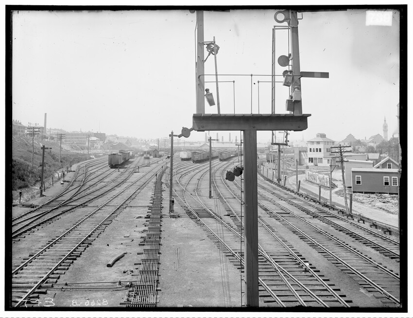 North side of freight house, east of station, Dalton, Massachusetts, 8259-B North side of freight house, east of station, Dalton, Massachusetts, 8260-B Unidentified grade crossing, looking south, Huntington, Massachusetts, 8261-B Unidentified grade crossing, looking north, Huntington, Massachusetts, 8262-B Unidentified grade crossing, looking north, Huntington, Massachusetts, 8263-B View of unidentified street, Gilbertville, Hardwick, Massachusetts, 8264-B Athol Branch, relocation around Swift River, abandoned for Quabbin Reservoir, Massachusetts, 8265-B Freight Yard, looking west from east end of railroad yard, old Union Station tower in background, Worcester, Massachusetts, 8266-B Beginning of freight yards, looking west, Worcester, Massachusetts, 8267-B Grand Junction Branch, looking west, Everett, Massachusetts, 8268-B Unidentified grade crossing, Chatham, New York, 8269-B Woodbridge Avenue, looking north, Chatham, New York, 8270-B View of unidentified grade crossing, Chatham Center, Chatham, New York, 8271-B Saratoga Street crossing, Grand Junction Branch, East Boston, Boston, Massachusetts, 8272-B Saratoga Street, Grand Junction Branch, East Boston, Boston, Massachusetts, 8273-B Main Street crossing, looking west, Ashland, Massachusetts, 8274-B Main Street crossing, looking north, Ashland, Massachusetts, 8275-B Main Street grade crossing, looking east, Newton Lower Falls, Newton, Massachusetts, 8276-B Main Street grade crossing, looking south, Newton Lower Falls, Newton, Massachusetts, 8277-B Brookline Junction, view of Tower 8, Beacon Street Bridge on the right, Highland Branch turns off to the left, Boston, Massachusetts, 8278-B Brookline Junction, view of Tower 8, Beacon Street Bridge in the background, looking east, Boston, Massachusetts, 8279-B Allston car repair shops, looking west, Brighton, Boston, Massachusetts, 8280-B East entrance to Beacon Park Yard, tower #9 at old Cottage Farm Bridge (now University Bridge), Charles River on the right, Allston, Boston, 8281-B Beacon Park Yard, western entrance, old dispatch office on the left, Allston, Boston, Massachusetts, 8282-B Beacon Park Yard, western entrance, old dispatch office on the left, Allston, Boston, Massachusetts, 8283-B Beacon Park Yard, western entrance, seen from Cambridge Street bridge, Allston, Boston, Massachusetts, 8284-B Huntington Avenue freight yards, west end, Boston, Massachusetts, 8285-B Huntington Avenue freight yards, west end, taken from under Boylston Street bridge, Mechanics Hall in the background, Boston, Massachusetts, 8286-B Crossing on Pittsfield and North Adams railroad, looking west, 8287-B Crossing on Pittsfield and North Adams railroad, looking west, broken wagon on right hit by train, 8288-B Crossing on Pittsfield and North Adams railroad, looking west, 8289-B Ware River railroad crossing, looking west, Baldwinsville, Templeton, Massachusetts, 8290-B Ware River railroad, Baldwinville, Templeton, Massachusetts, 8291-B Ware River railroad, Baldwinville, Templeton, Massachusetts, 8292-B Grafton Street, Worcester, Massachusetts, 8293-B Gatehouse on Gardner Street, Worcester, Massachusetts, 8294-B Grade crossing on Gardner Street, Worcester, Massachusetts, 8295-B Gardner Street, north side looking south, Worcester, Massachusetts, 8296-B Gardner Street, north side looking south, Worcester, Massachusetts, 8297-B Waushakum Street crossing on the Milford branch, Framingham, Massachusetts, 8299-B Gardner Street, south of tracks looking north, Worcester, Massachusetts, 8298-B Waushakum Street crossing on the Milford branch, looking north, Framingham, Massachusetts, 8300-B Milford branch, book bindery crossing, Framingham, Massachusetts, 8301-B Milford branch, book bindery crossing, Framingham, Massachusetts, 8302-B Milford branch, book bindery crossing, Framingham, Massachusetts, 8303-B Milford branch, near book bindery crossing, Framingham, Massachusetts, 8304-B Station and freight yard, end of Milford Branch, looking south, Milford, Massachusetts, 8305-B View of small island by the coast, at Sharksmouth Estate, Manchester-by-the-Sea, Massachusetts, 12974-B James Curtis on horse and Frazier Curtis Standing beside them, at Sharksmouth Estate, Manchester-by-the-Sea, Massachusetts, 12975-B The Curtis family children in a tree, at Sharksmouth Estate, Manchester-by-the-Sea, Massachusetts, 12976-B