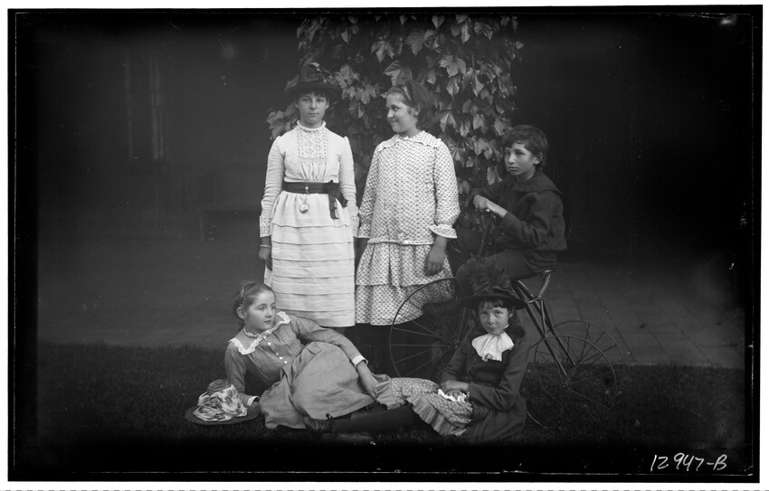 Group portrait of Harry Appleton Curtis on a tricycle and four other unidentified children, at Sharksmouth Estate, Manchester-by-the-Sea, Massachusetts, 12947-B Curtis family on tennis court, Elinor Curtis by the far left of the group, Frances Greely Curtis by the far right, and Frazier Curtis by the far right, at Sharksmouth Estate, Manchester-by-the-Sea, Ma… Trinity Church, Boston, Massachusetts, 12951-B Aunts Hannah Stevenson and Margaret Curtis at Sharksmouth Estate, Manchester-by-the-Sea, Massachusetts, 12949-B Greely Stevenson Curtis and unidentified child, at Sharksmouth Estate, Manchester-by-the-Sea, Massachusetts, 12950-B Portrait of Marjorie Appleton, sister of William Sumner Appleton, 12952-B Portrait of unidentified girl in dress, at Sharksmouth Estate, Manchester-by-the-Sea, Massachusetts, 12953-B Portrait of unidentified girl, 12954-B Frazier Curtis dressed up in a costume, at Sharksmouth Estate, Manchester-by-the-Sea, Massachusetts, 12955-B Frazier Curtis looking at an object in his hand, at Sharksmouth Estate, Manchester-by-the-Sea, Massachusetts, 12956-B Portrait of Margaret Curtis, at Sharksmouth Estate, Manchester-by-the-Sea, Massachusetts, 12957-B James Freeman Curtis with ducks and dog, at Sharksmouth Estate, Manchester-by-the-Sea, Massachusetts, 12958-B James Freeman Curtis with ducks and dog, at Sharksmouth Estate, Manchester-by-the-Sea, Massachusetts, 12959-B Portrait of unidentified girl, at Sharksmouth Estate, Manchester-by-the-Sea, Massachusetts, 12960-B Ducks in a pond, at Sharksmouth Estate, Manchester-by-the-Sea, Massachusetts, 12961-B Portrait of Harry Appleton Curtis, at Sharksmouth Estate, Manchester-by-the-Sea, Massachusetts, 12962-B Portrait of Marjorie Appleton, sister of William Sumner Appleton, 12963-B Group portait of the Curtis children lined up, at Sharksmouth Estate, Manchester-by-the-Sea, Massachusetts, 12964-B View of the Stone House, at Sharksmouth Estate, Manchester-by-the-Sea, Massachusetts, 12965-B Harry Curtis, Isabella Curtis, Frazier Curtis, and William Curtis by an apple tree, at Sharksmouth Estate, Manchester-by-the-Sea, Massachusetts, 12966-B Margaret Curtis, Frazier Curtis, and Harry Curtis blowing soap bubbles, at Sharksmouth Estate, Manchester-by-the-Sea, Massachusetts, 12967-B Group portrait of Margaret Curtis, Frazier Curtis, Harriot Curtis, James Freeman Curtis, and Harry Appleton Curtis, at Sharksmouth Estate, Manchester-by-the-Sea, Massachusetts, 12968-B Unidentified woman holding Margaret Curtis, at Sharksmouth Estate, Manchester-by-the-Sea, Massachusetts, 12969-B Elinor Curtis and another unidentified woman with Bessie P., who is dressed as a male artist, at Sharksmouth Estate, Manchester-by-the-Sea, Massachusetts, 12973-B Frances Greely Curtis reading a book, Manchester-by-the-Sea or Boston, Massachusetts 12980-B Portrait of Elinor Curtis, at Sharksmouth Estate, Manchester-by-the-Sea, Massachusetts, 12990-B Group portrait of Frazier Curtis, Harry Appleton Curtis, and James Freeman Curtis, at Sharksmouth Estate, Manchester-by-the-Sea, Massachusetts, 12992-B Kindergarten class Maypole dancing, Harriot Sumner Curtis looking at the camera on the left, Boston, Massachusetts, 12995-B Kindergarten class Maypole dancing, Boston, Massachusetts, 12996-B Kindergarten class siting at desks, Boston, Massachusetts, 12997-B Kindergarten class siting at desks, Boston, Massachusetts, 12998-B Portrait of unidentified baby, Boston, Massachusetts, 12999-B Group portrait of unidentified woman and two children, Boston, Massachusetts, 13001-B Old boat house, Manchester-by-the-Sea, Massachusetts, 13002-B Portrait of Frazier Curtis, at Sharksmouth Estate, Manchester-by-the-Sea, Massachusetts, 12993-B Portrait of Margaret Curtis, at Sharksmouth Estate, Manchester-by-the-Sea, Massachusetts, 12994-B Portrait of Frances Greely Curtis, at Sharksmouth Estate, Manchester-by-the-Sea, Massachusetts, 12883-B Harriot Sumner Curtis and Margaret Curtis on a sled, unidentified girl in the background, Boston, Massachusetts, 12884-B Group portrait of children in winter clothing and skates, Harriot Sumner Curtis and Margaret Curtis on a sled, Boston, Massachusetts, 12885-B Group portrait of Harriot Sumner Curtis and Margaret Curtis, Boston, Massachusetts, 12886-B Group portrait of Harriot Sumner Curtis and Margaret Curtis, Boston, Massachusetts, 12887-B Elinor Curtis in a white dress, Boston, Massachusetts, 12888-B Elinor Curtis in a white dress, Boston, Massachusetts, 12889-B Portrait of unidentified girl in dress, Boston, Massachusetts, 12890-B Elinor Curtis and unidentified girl dressed up, participating in theatricals, Boston, Massachusetts, 12891-B Elinor Curtis and unidentified girl dressed up, Boston, Massachusetts, 12892-B Isabella Curtis and unidentified boy dressed up, participating in theatricals, Boston, Massachusetts, 12893-B Margaret Curtis and Harriot Sumner Curtis sitting on porch with unidentified older woman, at Sharksmouth Estate, Manchester-by-the-Sea, Massachusetts, 12894-B Margaret Curtis sitting on porch with unidentified older woman, at Sharksmouth Estate, Manchester-by-the-Sea, Massachusetts, 12895-B Group portrait of seven of the Curtis children, from left to right: Margaret Curtis, Harriot Sumner Curtis, James Freeman Curtis, Frazier Curtis, Harry Appleton Curtis, Isabella Curtis, and Greely Ste…