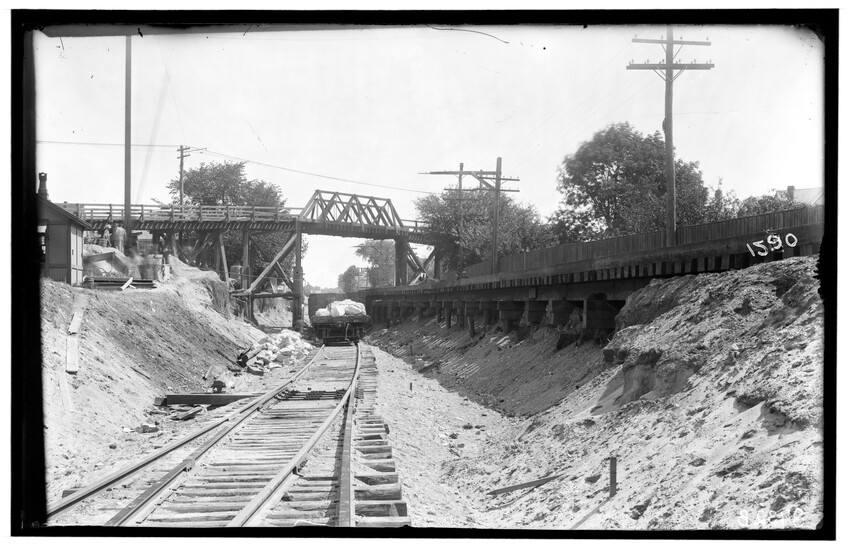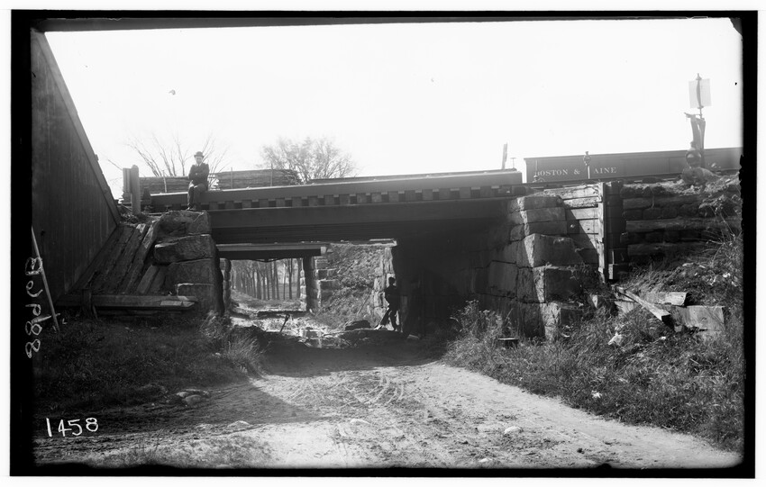 Southville station crossing, looking north, Southville, Southborough, Massachusetts, 8711-B Southville station crossing, Southville, Southborough, Massachusetts, 8712-B Rocklawn crossing, looking south, Southville, Southborough, Massachusetts, 8713-B Flint's Main crossing, looking north, Canaan, New York, 8714-B Flint's Main crossing, looking south, Canaan, New York, 8715-B Schilling's crossing, looking south, Canaan, New York, 8716-B Newton Centre Railroad Station, looking east, Newton Centre, Newton, Massachusetts, 8717-B View of trench, looking west, Newton Centre, Newton, Massachusetts, 8718-B Road looking west from opposite Cousen's, Newton Centre, Newton, Massachusetts, 8719-B Centre Street crossing, showing ice house at western end of freight yard, Newton, Massachusetts, 8720-B View in freight yard before breaking ground, Highland Branch, Newton Centre, Newton, Massachusetts, 8721-B Newton Highlands railroad station, looking east from Walnut Street bridge, Highland Branch, Newton Highlands, Newton, Massachusetts, 8722-B Hyde Street bridge abutment and east walls during construction, Highland Branch, Newton Highlands, Newton, Massachusetts, 8723-B General view of work at Centre Street, Highland Branch, Newton Centre, Newton, Massachusetts, 8724-B Centre Street crossing, Highland Branch, Newton Centre, Newton, Massachusetts, 8725-B Trench between Institution Avenue and Cypress Street in Newton Centre, north side, looking west, Newton, Massachusetts, 8726-B View showing ice houses and wagons on Norwood Avenue, Highland Branch, Newton Centre, Newton, Massachusetts, 8727-B Langley Road, north, showing wagons on street, Newton Centre, Newton, Massachusetts, 8728-B Railroad crossing at Boylston Street, south of tracks, Highland Branch, Newton Highlands, Newton, Massachusetts, 8729-B Pile driver at Longwood, spire of Sears Church in background, Highland Branch, Brookline, Massachusetts, 8730-B Grade crossing, Glen Avenue, looking north, Highland Branch, Newton Centre, Newton, Massachusetts, 8731-B Looking east along tracks at Boylston Street, Highland Branch, Newton Highlands, Newton, Massachusetts, 8732-B Walnut Street Crossing, south of tracks, Highland Branch, Newton Highlands, Newton, Massachusetts, 8733-B Riverside engine house, front view before extension, Newton, Massachusetts, 8734-B Bridge #218, Niverville, Kinderhook, New York, 8885-B Bridge #218, Niverville, Kinderhook, New York, 8886-B Arch culvert, probably built in 1840, in the Berkshire Mountains, Massachusetts, 8887-B Bridge #195, west side, East Chatham, Chatham, New York, 8888-B Bridge #195, east abutment, East Chatham, Chatham, New York, 8889-B Bridge #97, south corner, west abutment, Palmer, Massachusetts, 8890-B Bridge #372, west abutment, on North Brookfield branch, East Brookfield, Brookfield, Massachusetts, 8891-B Chelsea Street bridge, south approach, East Boston, Boston, Massachusetts, 8892-B South abutment from north, also B & M railroad bridge, Winchendon, Massachusetts, 8893-B Bridge #400, south abutment from under bridge, Winchendon, Massachusetts, 8894-B Bridge #400, south abutment from under bridge, Winchendon, Massachusetts, 8895-B Bridge #400, general view from the east, Winchendon, Massachusetts, 8896-B Bridge #395, on Ware River branch, Barre, Massachusetts, 8897-B Bridge #395, on Ware River branch, Barre, Massachusetts, 8898-B Bridge #372, on North Brookfield branch, west abutment from south, East Brookfield, Brookfield, Massachusetts, 8899-B Bridge #216, at Post Road crossing, Niverville, Kinderhook, New York, 8900-B Bridge #195, south side, East Chatham, Chatham, New York, 8901-B Bridge #195, repairs to abutments, East Chatham, Chatham, New York, 8902-B Bridge #195, repairs to abutments, East Chatham, Chatham, New York, 8903-B Bridge #195, repairs to abutments, East Chatham, Chatham, New York, 8904-B Bridge #195, repairs to abutments, East Chatham, Chatham, New York, 8905-B Bridge #195, repairs to abutments, East Chatham, Chatham, New York, 8906-B Building of Cottage Farm Bridge, Allston, Boston, Massachusetts, 8907-B Construction of Boylston Street bridge, east truss from carriage to abutment, Boston, Massachusetts, 8908-B Arch bridge over Charles River, taken after street lamps were lighted, Riverside, Newton, Massachusetts, 8909-B Bridge #209, east corner, north abutment, Chatham, New York, 8910-B