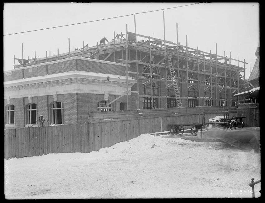Stagecoach outside of Wolfe Tavern, Newburyport, Massachusetts, GN-1309 Dr. John C. Page School, West Newbury, Massachusetts, GN-1310 Unidentified church on Harris Street, Newburyport, Massachusetts, GN-1311 Newburyport Five Cents Savings Bank, State Street, Newburyport, Massachusetts, GN-1312 Newburyport High School, Newburyport, Massachusetts, GN-1313 First Parish Church of Newbury, Newbury, Massachusetts, GN-1316a First Parish Church of Newbury, Newbury, Massachusetts, GN-1316b Fireplace and mantel inside the Joseph Atkins House, 9 Strong Street, Newburyport, Massachusetts, GN-1319a Entrance hall of the Joseph Atkins House, 9 Strong Street, Newburyport, Massachusetts, GN-1319b Interior door of the Joseph Atkins House, 9 Strong Street, Newburyport, Massachusetts, GN-1319c The Joseph Atkins House, 9 Strong Street, Newburyport, Massachusetts, GN-1319d Elementary school, Rocky Hill Road, Salisbury Point, Massachusetts, GN-2000 Free Will Meeting House, Friend Street, Amesbury, Massachusetts, GN-2001 Rocky Hill Road, Salisbury Point, Amesbury, Massachusetts, GN-2002 Main Street, looking north, Amesbury, Massachusetts, GN-2003 Corner of Market Square and Main Street, Amesbury, Massachusetts, GN-2004 Main Street and bridge over Powwow River, Amesbury, Massachusetts, GN-2005 Main Street and Merchant Row, Amesbury, Massachusetts, GN-2006 Near boat shops, Salisbury Point, Amesbury, Massachusetts, GN-2009 High School, Amesbury, Massachusetts, GN-2010 Amesbury and Salisbury seen from Mt. Prospect Cemetery, Amesbury, Massachusetts, GN-2011 Amesbury and Salisbury Post Office, Amesbury, Massachusetts, GN-2012a Amesbury and Salisbury Post Office, Amesbury, Massachusetts, GN-2012b Briggs Carriage Company factory, Cedar Street, Amesbury, Massachusetts, GN-2013 New passenger railroad station, detail of main entrance and marquee, south side or front, Pittsfield, Mass., 10350-B New passenger railroad station construction, roof of Express Building, looking east, Pittsfield, Mass., 10351-B New passenger railroad station construction, main entrance showing marquee, Pittsfield, Mass., 10352-B New railroad passenger station, construction, express building looking east, Pittsfield, Mass., 10353-B New railroad passenger station construction, northwest corner of ceiling waiting room, main building, Pittsfield, Mass., 10354-B New railroad passenger station construction, detail of ceiling tile, waiting room, Pittsfield, Mass., 10355-B New passenger railroad station construction, waiting room interior, north and east sides, Pittsfield, Mass., 10356-B New passenger railroad station construction, waiting room interior, Pittsfield, Mass., 10357-B New passenger railroad station, construction, south or front of main building, Pittsfield, Mass., 10358-B New passenger station construction, northeast rear corner, main building, Pittsfield, Mass., 10359-B New passenger station construction, north entrance, express building, Pittsfield, Mass., 10360-B New passenger station construction looking east, showing express building in foreground, main building in background and old station on left, Pittsfield, Mass., 10361-B New passenger station construction, interior of main building, Pittsfield, Mass., 10362-B New passenger station construction, main entrance, Pittsfield, Mass., 10363-B New passenger station, rear side of station looking west over tracks and platform, Pittsfield, Mass., 10364-B New passenger station, interior of restaurant, Pittsfield, Mass., 10365-B New passenger station, interior of waiting room and concourse, Pittsfield, Mass., 10366-B New passenger station construction, looking southwest, west face of main building, Pittsfield, Mass., 10367-B New passenger station construction looking southeast, showing city in background, Pittsfield, Mass., 10368-B New passenger station construction, interior of express building, Pittsfield, Mass., 10369-B New passenger station construction, north wall of baggage room, Pittsfield, Mass., 10370-B New passenger station construction, south of main front, main building looking west, Pittsfield, Mass., 10371-B New passenger station construction, south or front of main building looking west, Pittsfield, Mass., 10372-B New passenger station construction, southeast corner main building, Pittsfield, Mass., 10373-B New passenger station construction, south or front of main building, Pittsfield, Mass., 10374-B New passenger station construction, south or front of main building taken from southeast corner, Pittsfield, MA., 10375-B