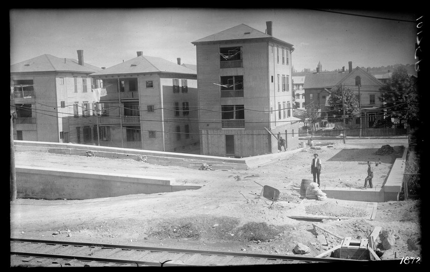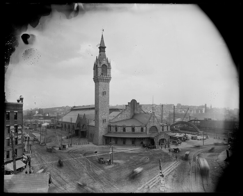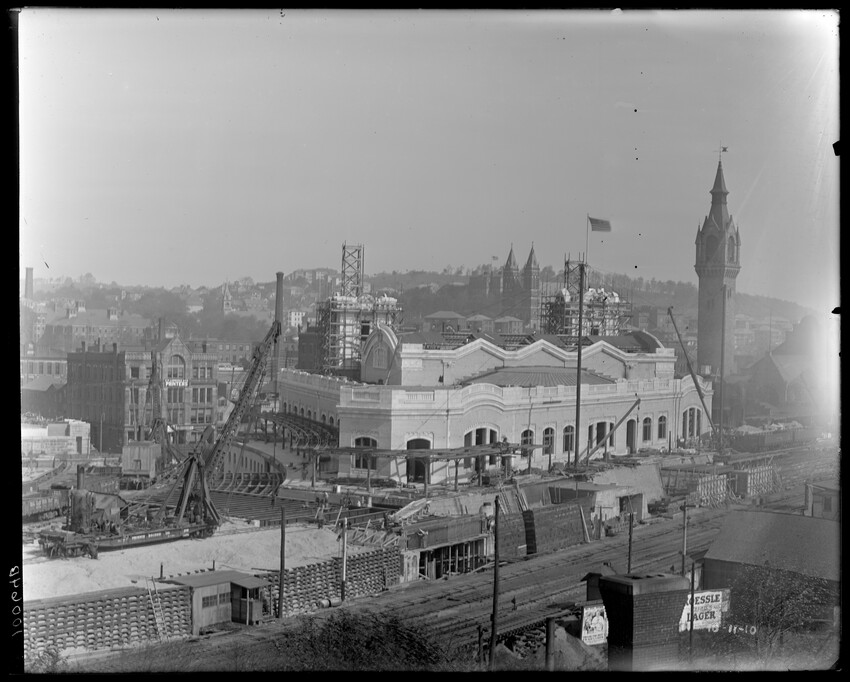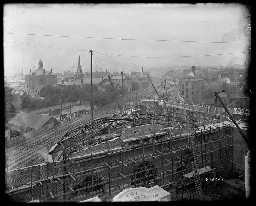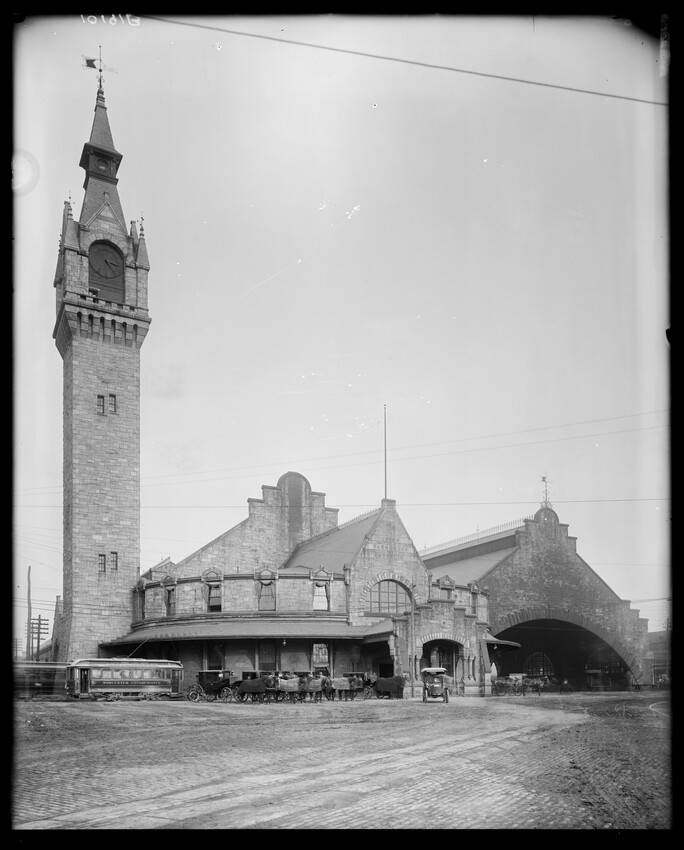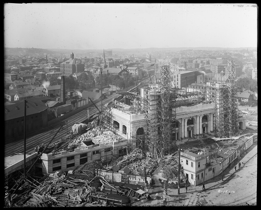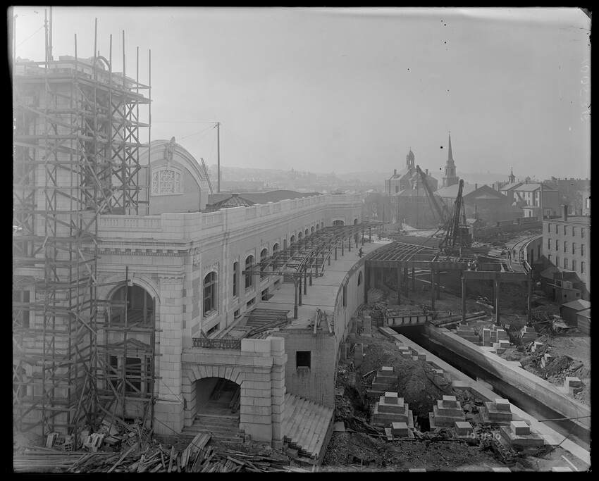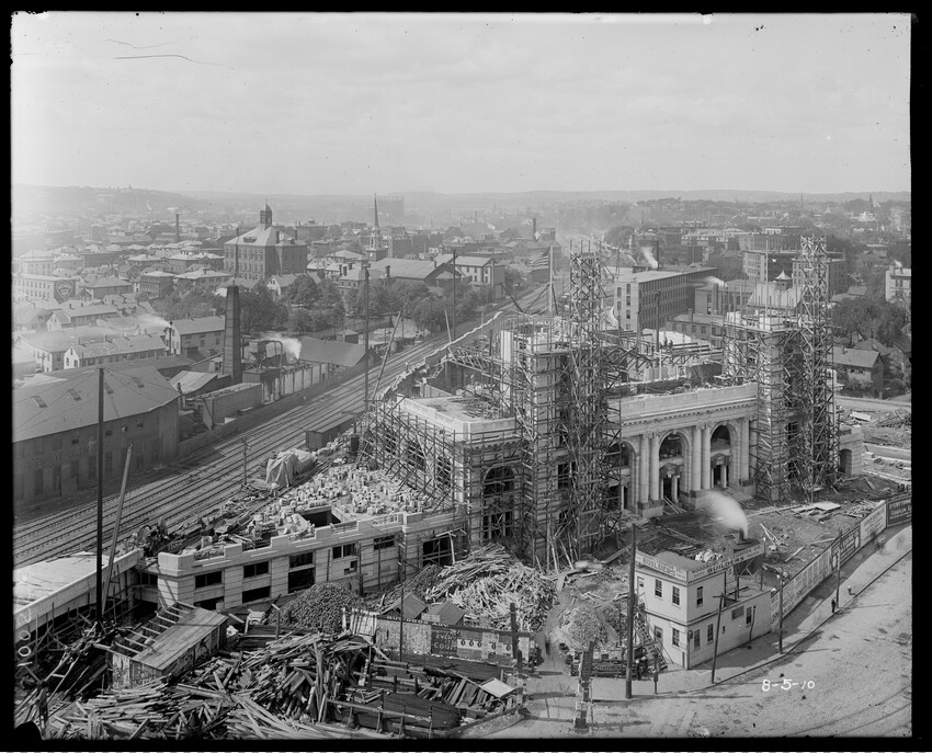 Gates Street extension looking south during the elimination of grade crossings at South Worcester, Worcester, Mass., 10175-B Leonard Street looking south, during grade crossing elimination project at South Worcester, Worcester, Mass., 10176-B Views looking southeast down tracks during grade crossing elimination project, Worcester, Mass., 10177-B Gates Street looking south during grade crossing elimination project at South Worcester, Worcester, Mass., 10178-B Tracks looking south at Gates Street extension during grade crossing elimination project, Worcester, Mass., 10179-B Tracks looking southwest at Gates Street, extension during grade crossing elimination project, Worcester, Mass., 10180-B Grade crossing elimination project in South Worcester, wood forms and wall at Gates Street extension, Worcester, Mass., 10181-B William Allen Sons Boiler Works at Washington Street, Worcester, Mass., 10182-B Tracks looking east at Gardner Street, Crompton and Knowles Loom Works on left, taken during grade crossing elimination project at South Worcester, Worcester, Mass., 10183-B Buildings off Madison Street looking west, Worcester, Mass., 10184-B Buildings off Madison Street, looking east, railroad on left, Worcester, Mass., 10185-B Blueprint of Old Union Railroad Station, Worcester, Mass., 10186-B Old Union Railroad Station looking west, Worcester, Mass., 10187-B Unidentified railroad station, 10188-B Old Union Railroad Station, looking east, Worcester, Mass., 10189-B Construction of new Union Railroad Station, exterior, Worcester, Mass., 10190-B Old Union Railroad Station, front of west side, showing trolley and carriages, Worcester, Mass., 10191-B Union Railroad Station, interior, Worcester, Mass., 10192-B Union Railroad Station, exterior during construction, Worcester, Mass., 10193-B Union Railroad Station, exterior, entrance from Washington Square, Worcester, Mass., 10194-B City Ticket Office, interior, Worcester, Mass., 10195-B Plymouth Street Railroad crossing, showing railroad cars, Worcester, Mass., 10196-B Retaining wall west of Grafton Street on main line of Boston & Albany Railroad, Worcester, Mass., 10197-B Retaining wall west of Grafton Street on main line of Boston & Albany Railroad, Worcester, Mass., 10198-B Construction of new Union Station, front elevation looking west from old station roof, Worcester, Mass., 10048-B Construction of new Union Station, looking down into unfinished area for concourses, view to west, Worcester, Mass., 10049-B Construction of new Union Station, west side looking east, showing steel work for elevated tracks and platform canopies, Worcester, Mass., 10050-B Construction of new Union Station, west side looking east, Worcester, Mass., 10051-B Construction of new Union Station, west side, looking east, old station in background, Worcester, Mass., 10052-B Construction of new Union Station showing west side and elevated tracks for Boston and Maine Railroad and New Haven Railroad trains, Worcester, Mass., 10053-B West side of new Union Station, looking east, showing start of elevation of tracks and building of bridges over streets, Worcester, Mass., 10054-B Construction of new Union Station, front elevation looking west from roof of old station, Worcester, Mass., 10055-B Construction of new Union Station, front elevation looking west from roof of old station, Worcester, Mass., 10056-B Construction of new Union Station, front elevation looking west from roof of old station, Worcester, Mass., 10057-B Old Union Station, southwest corner, elevating tracks above street level for new station, Worcester, Mass., 10058-B Washington Square and old Union Station, showing maze of railroad tracks, trolly tracks, and crossing gates. During construction of new station and dismantling of old train shed, Worcester, Mass., 100… Old Union Station, Boston and Maine Railroad, exit, 10060-B Old Union Station and temporary shelter and platform during construction of new Union Station, Worcester, Mass., 10061-B Construction of signal tower #28, in connection with new Union Station, Worcester, Mass., 10062-B Construction of new Union Station, rear of south side elevation looking north, old station in right background, Worcester, Mass., 10063-B Construction of new Union Station, rear elevation, looking north, showing start of raising tracks above street level, old station in right background, Worcester, Mass., 10064-B Construction of new Union Station, front elevation, looking west from old station roof, Washington Square in foreground, Worcester, Mass., 10065-B Construction of new Union Station, front elevation, looking west from old station roof, Washington Square in foreground, Worcester, Mass., 10066-B Construction of new Union Station, front elevation from old station, Worcester, Mass., 10067-B Construction of new Union Station, looking west, view from roof of old station, Worcester, Mass., 10068-B Construction of new Union Station, south side, looking east, Worcester, Mass., 10069-B Completed new Union Station from Tower #28 looking east, Worcester, Mass., 10070-B Construction of new Express Building on site of old station, Worcester, Mass., 10071-B Interior of city ticket office at 385 Main Street, Worcester, Mass., 10072-B Exterior of city ticket office at 385 Main Street, Worcester, Mass., 10073-B