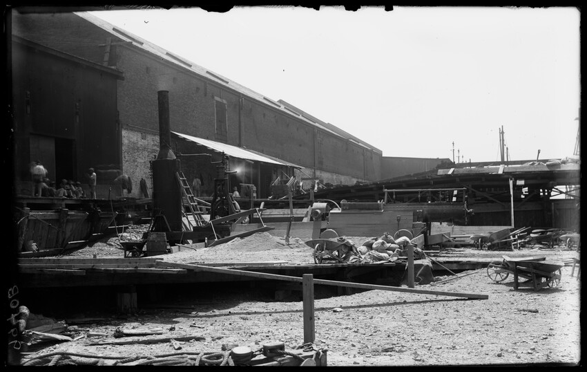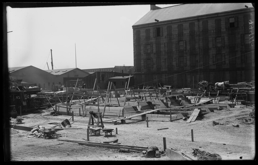 A)Jacket/bodice - black velvet; chemisette with high boned collar of net, lace jabot attached to cream satin panel; wide velvet lapels; 3/4 velvet sleeves, gathered at shoulder, with turned back cuff; net undersleeves with tucks, lace ruffle and black net trim; jacket is open but has inner waistcoat...