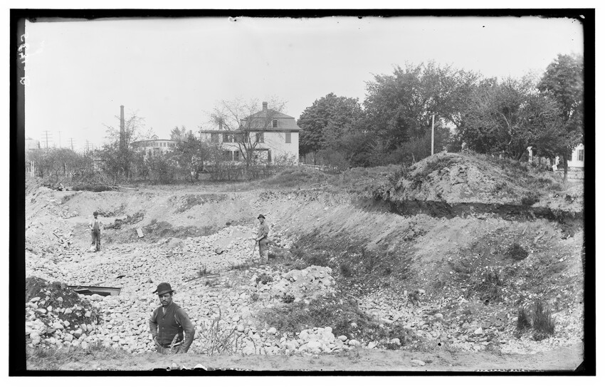 This ring is set with a rectangular, faceted paste stone over a gold twist cipher. Two smaller pastes flank each side. Fitting the eighteenth-century style, the pastes were set in silver, while the ring band is gold. The inside of the band is inscribed with a moral aphorism to the future wearer: "Le...
