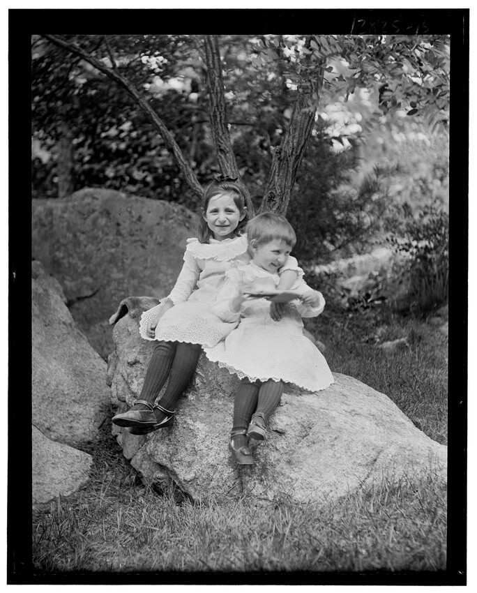The image shows a view of the coastline at Sharksmouth Estate in Manchester-by-the-Sea, Massachusetts. In the foreground, there are tree-covered areas, and in the distance, several small islands are visible in the water. The coastline stretches out towards the horizon.